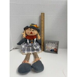 2 Piece Fall Harvest Thanksgiving Lot Scarecrow And Small Freestanding Sign Lot