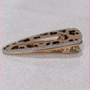 1- Gold clip with Leopard print fabric and rhinestone edging