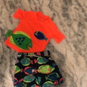 2 Piece Fish Rash Guard Top & Swim Trunks Set