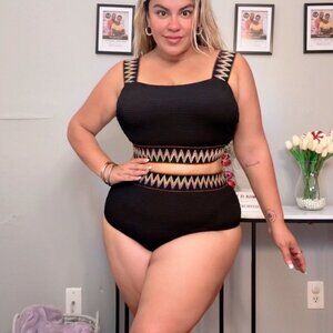 2 Piece Halter Top High Waisted Swim Suit Biki Black Aztec Island Pattern Xxl