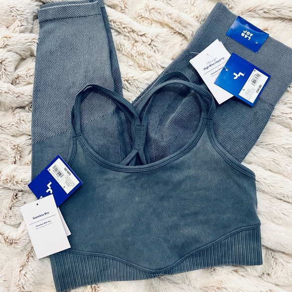 Add this trendy and comfortable 2 piece set (seamless bra + 7/8 high rise tight - size Large) to your workout wardrobe, fall collection, lounge attire and more!!! New With Tags! New Worn!