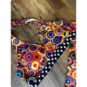 Black & white polka dots mixed with multi-color psychedelic circle pattern