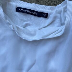 ➡️ CALVIN KLEIN TOP Sheer 100% polyester overlay with rounded hem attached to cotton blend tank