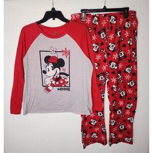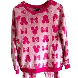 2 Piece Pajama Ser Disney Peach Mickey Floral Capree Pajamas Size L