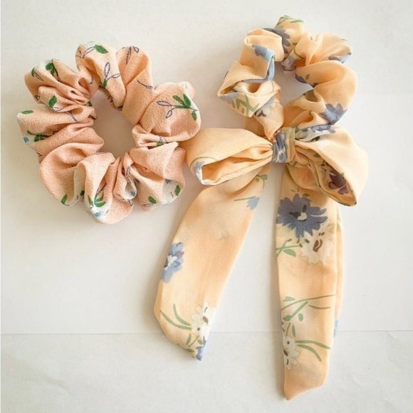 2 Piece Pink Floral Scrunchie Bow Bundle