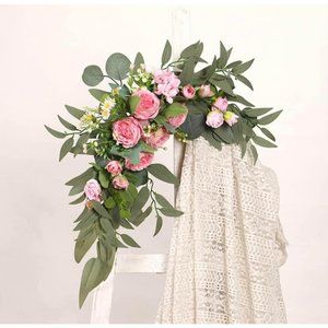 2 Piece | Pink Peony & Rose Blush Arch Flowers Swags Willow Eucalyptus Wedding