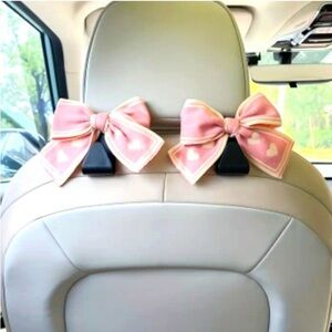 2 Piece: Pink & White Bow Handbag Car Hooks, NWOT