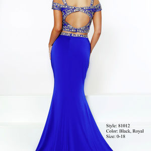 Royal Blue 2 Piece Dress with gold accents. Keyhole back