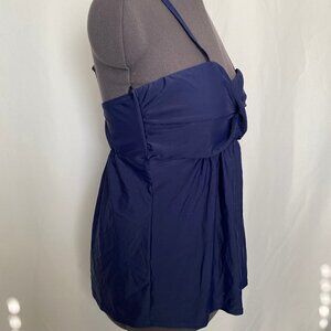 2 Piece Royal Blue Bathing Suit...crisscross bra style with attached skirt...matching bottom same color...adjustable strap...Bra cup support...NWOT...excellent condition...see photos for details...062022