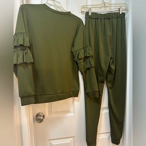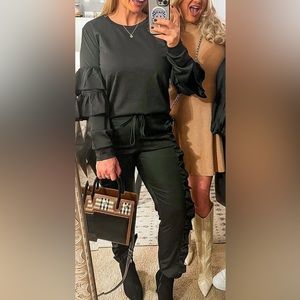 Women 2 Piece Ruffle Jogger Outfit Puff Sleeve Top and Long Flounced Pants in brand new condition without tags