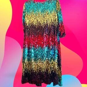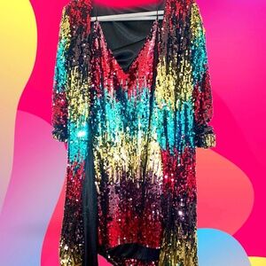 2 Piece Sequin Multi Color Dress and Duster Large NWOT