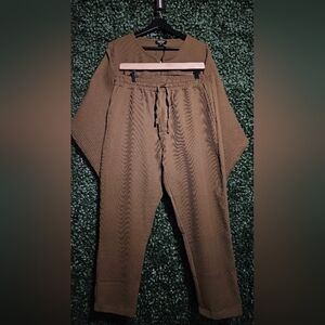 Stylish brown zip-up shirt and pants with a relaxed fit. Perfect for layering.