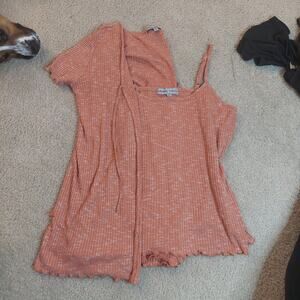 This is a two-piece set featuring an orange camisole and an orange overshirt.