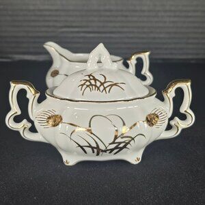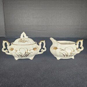 2 Piece Set Vintage 1940s Lefton China Footed Wheat Pattern Sugar Bowl & Creamer