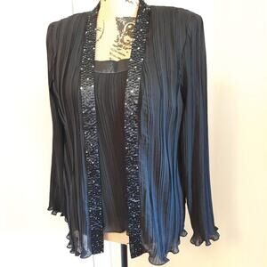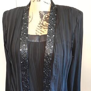 2 Piece Shell & Jacket Black Mini Pleat Beaded Set Size 14 Holiday Wear LNC