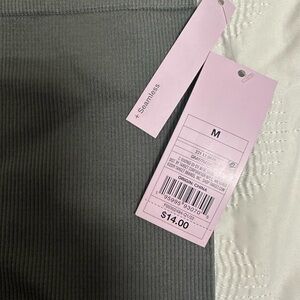 These gray leggings offer a snug, compression-like fit perfect for athletic activities. Made from a smooth, stretchy material, they feature a wide, flat waistband for added comfort and support. Ideal for workouts or casual wear.