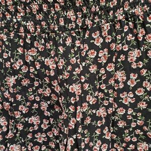 Color is black with tiny pink roses. 100% Rayon