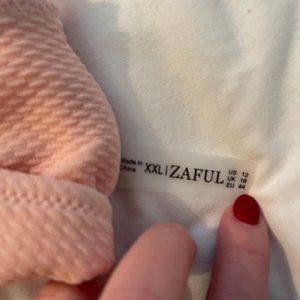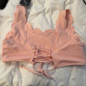 2 piece swimsuit with tags and scalloping on top and bottom. Never worn.