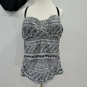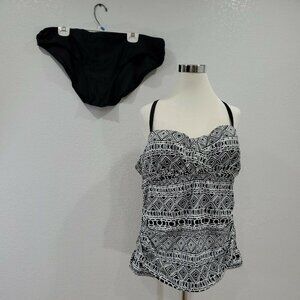 2 Piece Tankini Swimsuit Set NWTS Black / White Geometric Racerback New