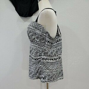 2 Piece Tankini Swimsuit Set 3XL Black White Geometric Racerback Beachwear New