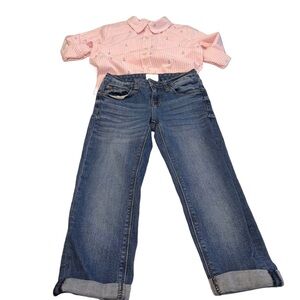 2 Piece Unisex Outfit Hudson Jeans & Oshkosh Button Down Oxford Shirt Sz 7
