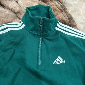 Adidas Green with white stripes on arms and chest logo zipper mock neck sweatshirt Xs