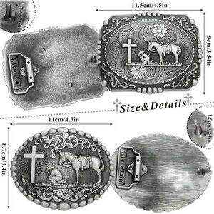 Suitable Size:The rodeo belt buckles have 2 different size to choose from,large size and small size. The large belt buckle measures approximately 11cm(4.3in) x 9cm(3.5in),and the small size is about 8.5cm(3.3in) x6.3cm(2.5in),both of them fits standard 1.5" snap on belts.