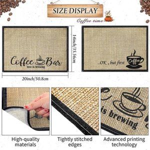 🧿Crafted Burlap Placemat: the surface of this place mats for bar is printed with different fonts, such as [coffee bar love is brewing] and [ok, but first coffee], they can match your coffee machine very well, and can be placed on the work surface of your coffee machine to make your space more elegant