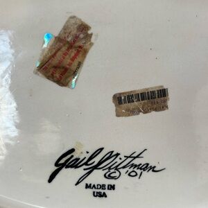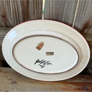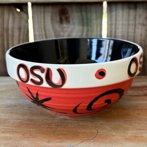 2 Piece Set H2F Oklahoma State University Vintage 2001 Gail Pittman Hand Painted Oval Platter & Bowl. OSU Cowboys Officially Licensed Collegiate Products. Pattern Includes “Go Cowboys” “OSU” Stars & Swirls. Colors Are Dark Orange, Black & Off White. Inside of the Bowl is Black. Both Pieces Are Signed on the Back and Dated 2001, with Licensing Stickers. These Collegiate Pieces Are Super Rare and Hard to Find.