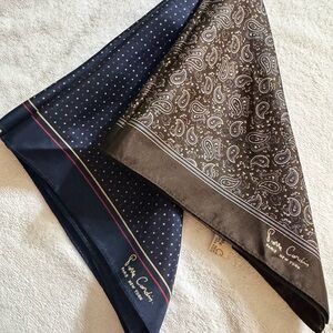 Elevate your style with these elegant Pierre Cardin pocket squares. Featuring a sophisticated brown paisley design and a classic blue polka dot pattern, these accessories add a touch of class to any outfit. These are 17 x 17 and are in GREAT condition! Open to offers. Both of these for the price of one!
