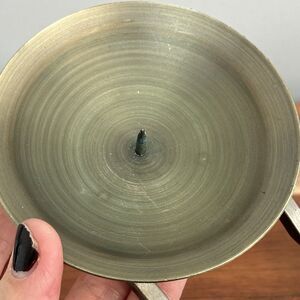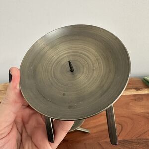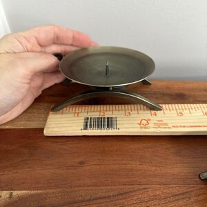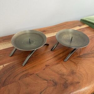 2- Pillar Candlestick Holder 4.5" Bronze Metal Brutalist MCM Modern Art Abstract