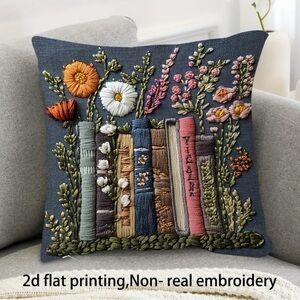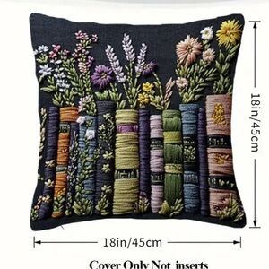 2pcs Tropical Floral Throw Pillow Covers, 45.72x45.72cm - Vibrant 2D Flat Printing with Colorful Flowers & Greenery, Zip Closure, Machine Washable Polyester - Ideal for Living Room, Bedroom, or Office Decor, Bedroom Decor | Floral Pattern | Zippered Pillowcase, Decorative Pillows Beautiful pillow with an embroidered floral and book design. Features vibrant colors including orange, pink, and green.