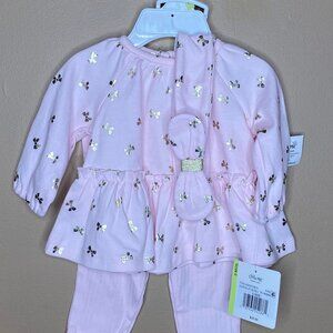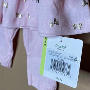 Little Me new with tags 100% cotton set; includes long sleeve dress topper over leggings with head bow. Gold bow print. So soft and cozy! Second set is short sleeve thermal onesie cotton blend with pants. Adorable!