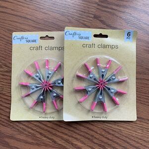 2 Packs of 6 Crafter's Square Arts & Craft 2 inch Steel Heavy Duty Clamps Pink.