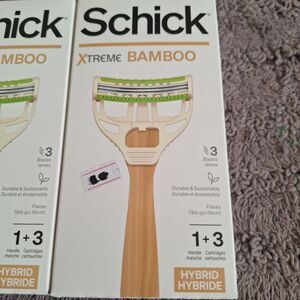2 Pk Schick Xtreme Bamboo Hybrid 6 Cartridges 2 Handles Men's Recyclable Razors.
