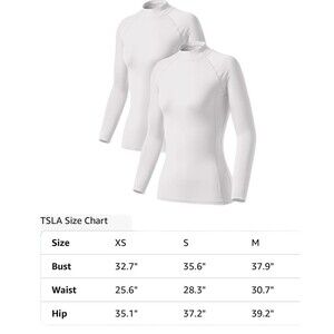 A pair of long sleeve mock neck compression base layer tops in white, size medium. Like New condition.