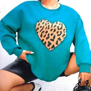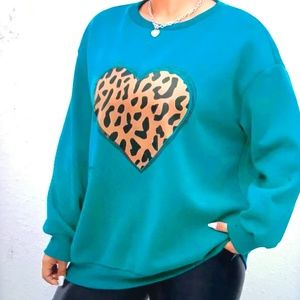 2 Plus Leopard & Heart Print Drop Shoulder Pullover