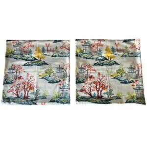 2 Plush 16” x 16” Pillow Covers Asian Scene Zipper Closure Multicolor