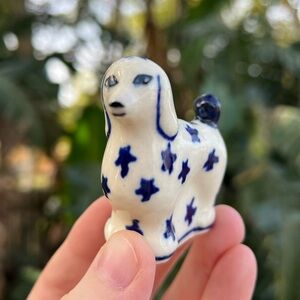2” Polish Pottery Dog Figurine – Hand-Painted Blue & White Ceramic Collectible