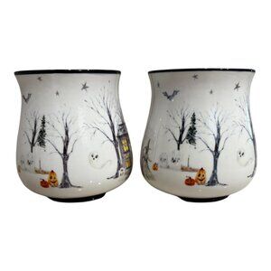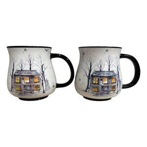 2 Potter's Studio Halloween Haunted House Ceramic Mugs Witch Ghost Tombstone New