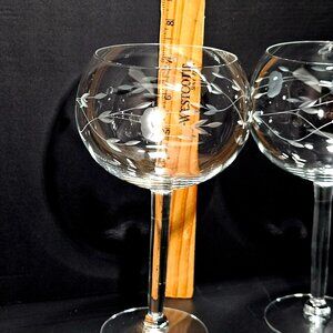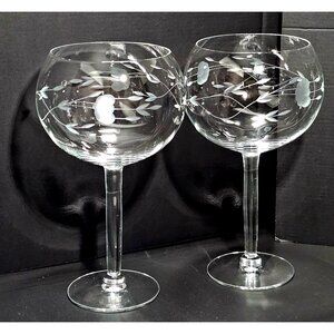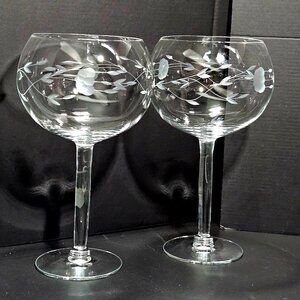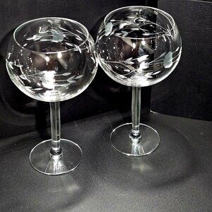 2 Princess House Heritage Balloon Wine Glasses 7.5" etched Crystal handblown