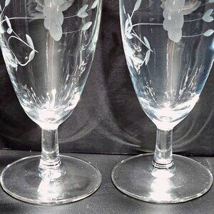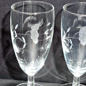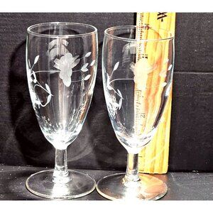 2 Princess House Heritage Juice Glasses 5" crystal etched 4oz vtg floral stemwar
