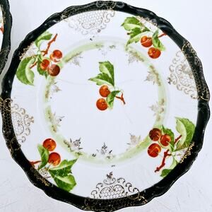 2 Prussia Royal Rudolstadt Porcelain Small Plates Cherries Pattern Green Mark 6"
