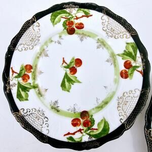2- Prussia Royal Rudolstadt Porcelain Small Plates Cherries Pattern Green Mark