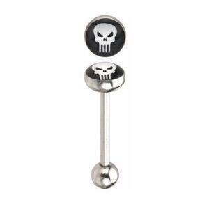 2 Punisher Logo Barbell Tongue Ring Silver and Black