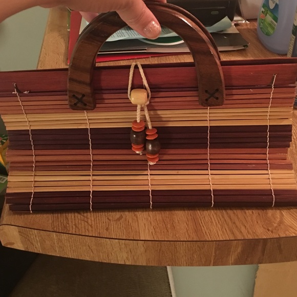 Unique wooden clutch bag. Only used twice and has remained in my closet for a few years. One interior pocket. AND Satchel purse with Plaid patchwork.