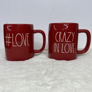 2 RAE DUNN #LOVE Crazy in Love Valentine's Day Hashtag Red Coffee Mug NEW