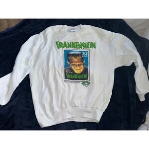 THIS IS FOR 2 SWEATSHIRTS FROM A COLLECTOR'S ESTATE - NEVER WORN COLLECTIBLE AND SUPER RARE SWEATSHIRTS FEATURING THE PHANTOM OF THE OPERA AND FRANKENSTEIN STAMPS FROM THE CLASSIC MONSTERS "SCARE MAIL" STAMP COLLECTION. DATED 1997. UNIVERSAL CITY STUDIOS. 100% COTTON. MEASUREMENTS IN PHOTOS. XL.