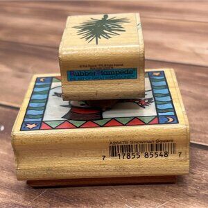 2 RUBBER STAMPEDE WOOD MOUNTED STAMPS SNOWMAN SQUARE A2647E POSH PINE Z151C