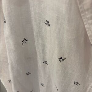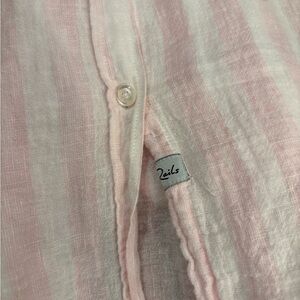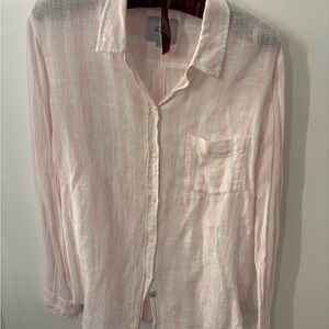 Light pink and white striped linen shirt plus white shirt with palm tree design. Features button detail and subtle branding. Both in very good condition.